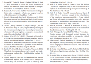 با این حال، در مطالعات فوق‌الذکر، چندین مشکل در روش تحقیق وجود داشت که منجر به تعصب بالقوه در محاسبات می‌شود. این مشکلات عبارتند از: تعصب آماری به دلیل استفاده از ایمپلنت به عنوان واحد آنالیز که موجب تخمین بیش از حد بالقوه می‌شود؛ تنها استفاده از تجزیه‌و‌تحلیل دو متغیره و حذف متغیرهای مخدوش‌کننده‌ی بالقوه و یا رقابت شاخص‌های خطر؛ در برگرفتن متغیرهای قابل‌توجه در مدل چند متغیره؛ استفاده از خطر نسبی در طراحی یک مطالعه‌ی گذشته‌نگر، سوگیری در مطالعه به دلیل حذف بیماران با سابقه‌ی بیماری سیستمیک، اندازه‌ی کوچک نمونه در یکی از گروه‌ها، تحلیل رفتن نمونه‌ها به طوری که کمتر از 32 درصد از بیماران، دوره‌ی پیگیری را تکمیل کردند و در برگرفتن نتایج چندین گزارش با دوره‌ی پیگیری کمتر از 5 سال در مطالعات متا آنالیز که سوالاتی را در مورد اعتبار مشاهدات 5 ساله یا طولانی‌تر ایجاد می‌کند.