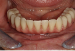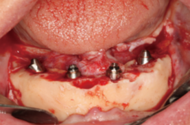 شکل 4. پروتزهای دندانی ثابت تمام قوس فکی که در روز جراحی برای رسیدن به عملکرد فوری به چهار ایمپلنت متصل شدند.