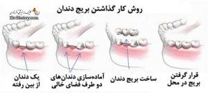 برای نگه داشتن بریج در محل میتوان از دندانهای طبیعی در دو طرف دندان از بین رفته یا ایمپلنت استفاده کرد.